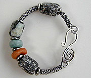 Showcase your own double coiled sterling silver bead in this bracelet - you will be using sterling silver wire to form the bracelet - this class is for the advanced student. Sterling silver wire and spacer beads are included in fee.